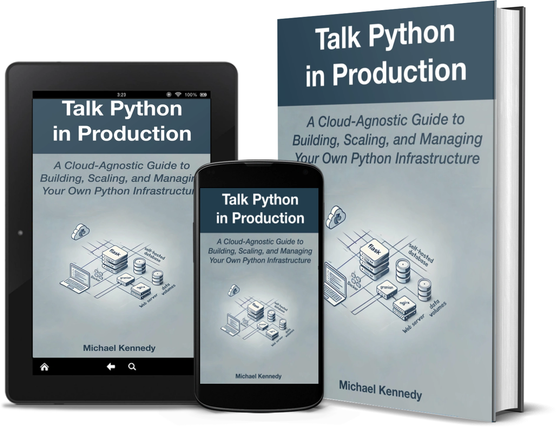 In the book, Michael shares a decade’s worth of experience managing the infrastructure for Talk Python’s online services. The book is designed as a hands-on guide for Python developers who want to master real-world deployment and DevOps practices.